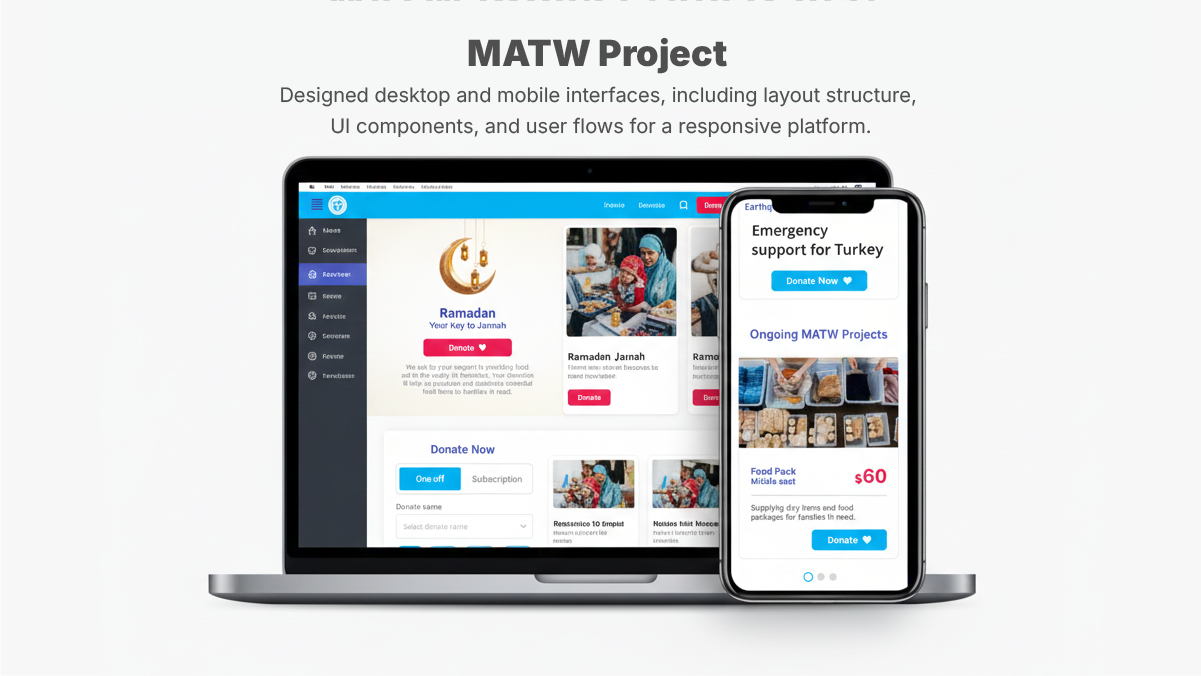 Designed desktop and mobile interfaces, including layout structure, UI components, and user flows for a responsive platform.